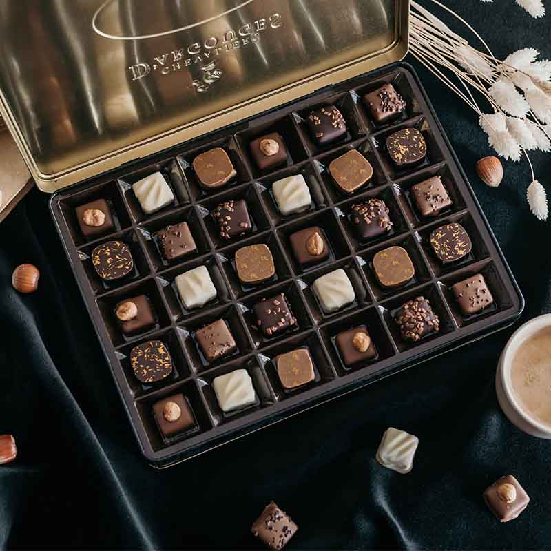 Le coffret Prestige, best-seller de la marque Chevaliers d'Argouges, allie raffinement et savoir-faire chocolatier.