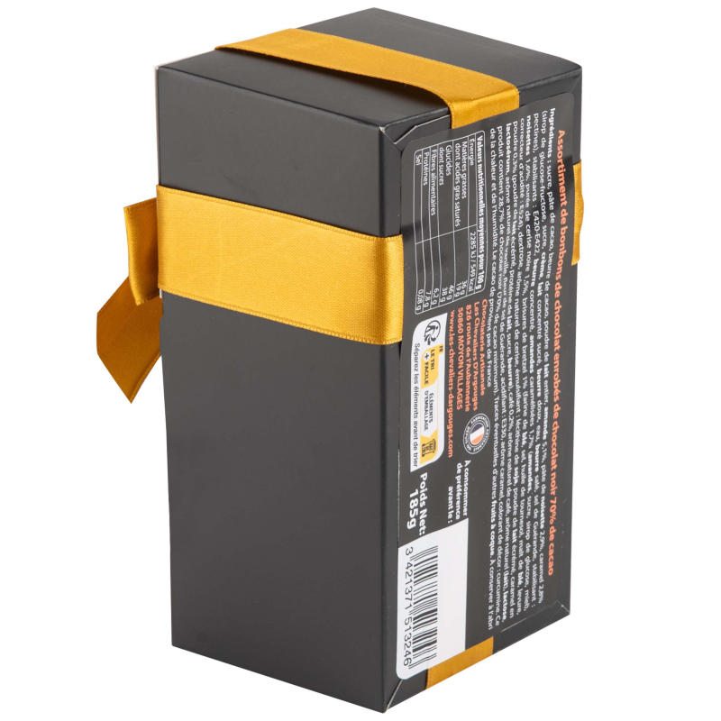 Le cadeau idéal au pied du sapin, le seul, l’unique : l’assortiment de chocolats en ballotin de toutes tailles. Dans cet écrin féérique, tous les gourmands trouveront leur bonheur : chocolat noir.