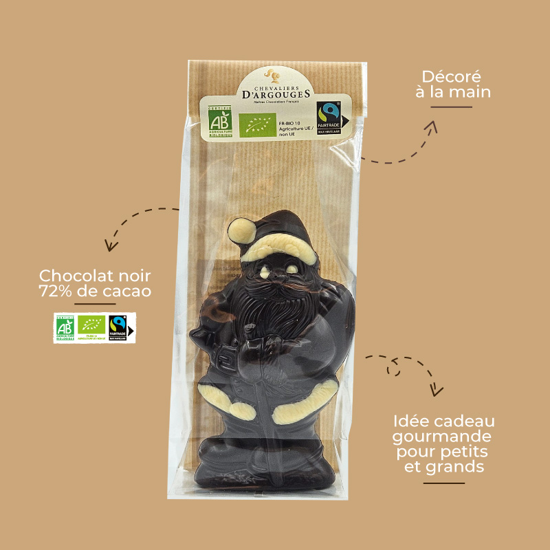Le moulage Père Noël bio/équitable Chevaliers d'Argouges est savoureux à souhait. Délicat, il sera parfait pour accompagner les cadeaux au pied du sapin