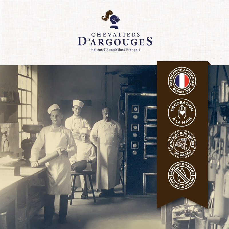 Il n'est pas un membre de Chevaliers d'Argouges qui ne soit passé par les ateliers : chacun doit maîtriser l'ensemble de la réalisation de ces trésors cacaotés. L'ambition des Chevaliers d'Argouges, c'est d'offrir à tous un chocolat de qualité, fort d'un savoir-faire traditionnel.