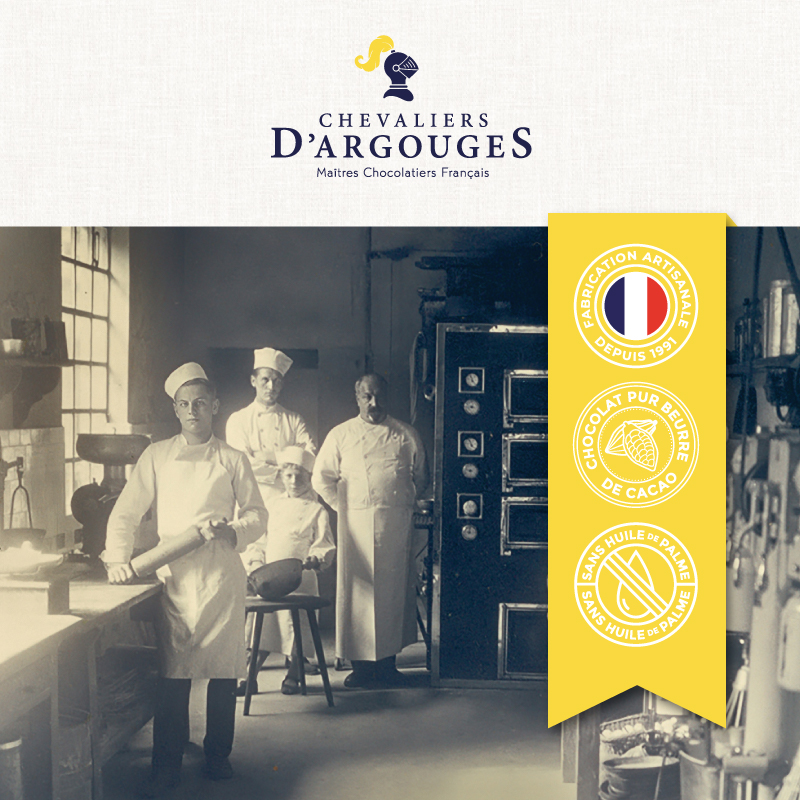Il n'est pas un membre de Chevaliers d'Argouges qui ne soit passé par les ateliers : chacun doit maîtriser l'ensemble de la réalisation de ces trésors cacaotés. L'ambition des Chevaliers d'Argouges, c'est d'offrir à tous un chocolat de qualité, fort d'un savoir-faire traditionnel.
