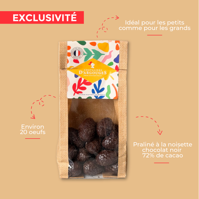 Mini œuf praliné chocolat noir 70% de cacao, 150g