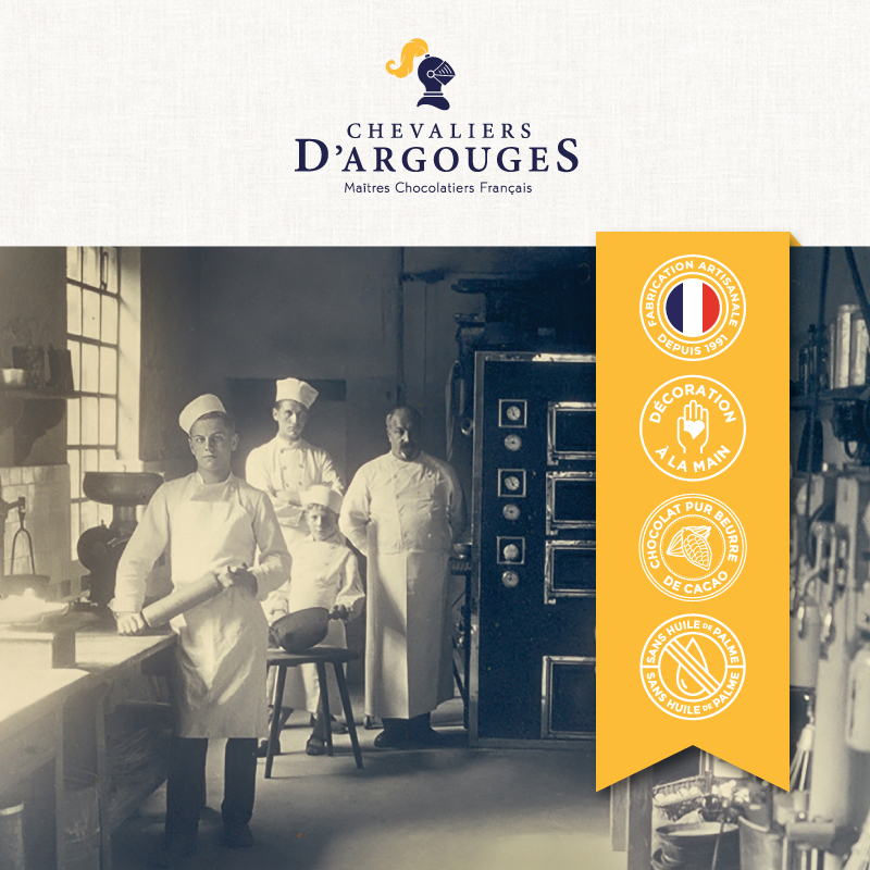 Il n'est pas un membre de Chevaliers d'Argouges qui ne soit passé par les ateliers : chacun doit maîtriser l'ensemble de la réalisation de ces trésors cacaotés. L'ambition des Chevaliers d'Argouges, c'est d'offrir à tous un chocolat de qualité, fort d'un savoir-faire traditionnel.