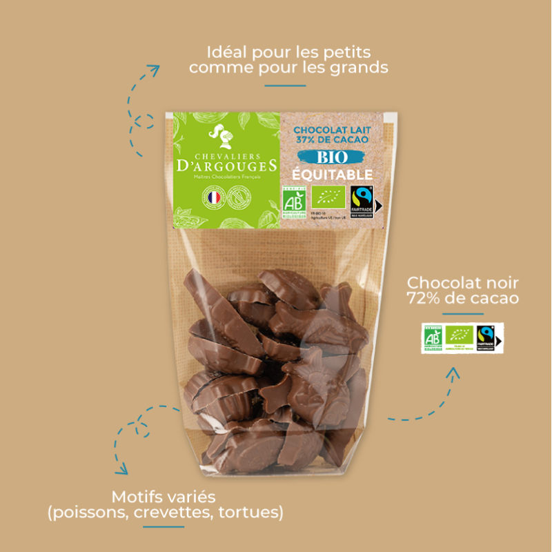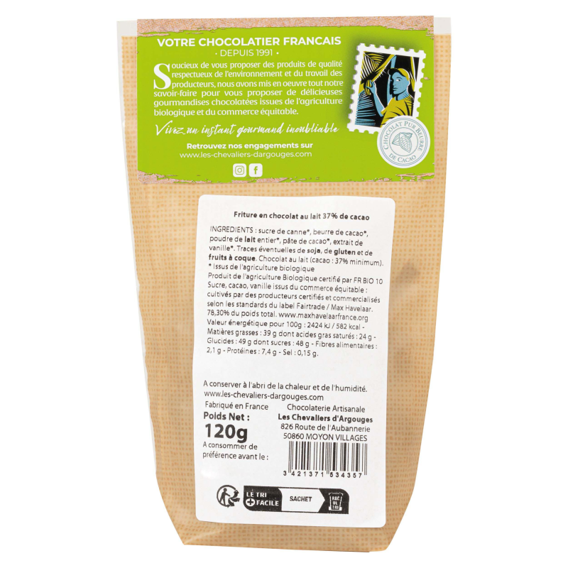 L'incontournable de Pâques, les fritures chocolat lait bio 37% de cacao et fabriqué à la main dans nos ateliers en Normandie.