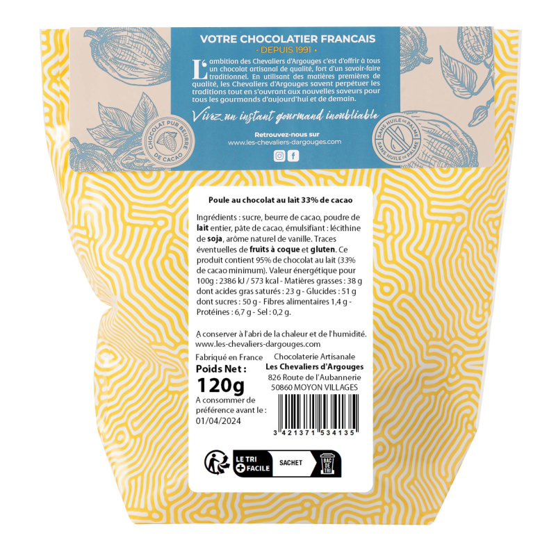 Poule au chocolat lait 33% de cacao, 115g