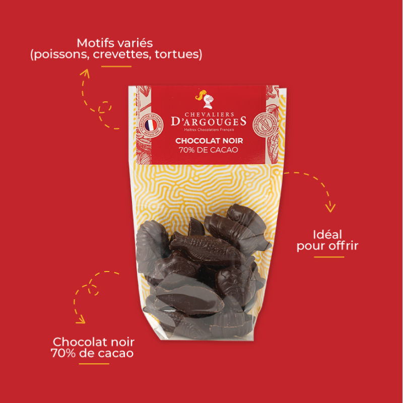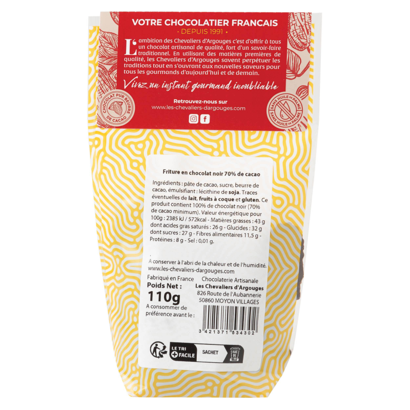L'incontournable de Pâques, les fritures chocolat noir 70% de cacao et fabriqué à la main dans nos ateliers en Normandie.