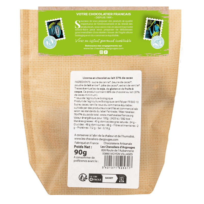 Licorne au chocolat lait 37% de cacao, 70g
