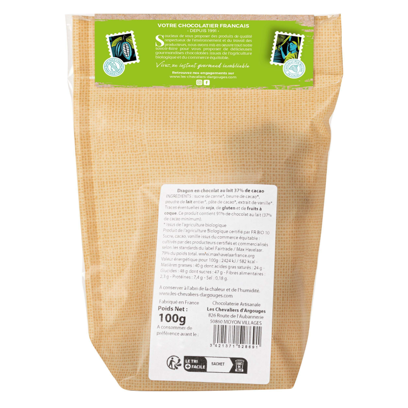 Dragon au chocolat lait 37% de cacao, 70g