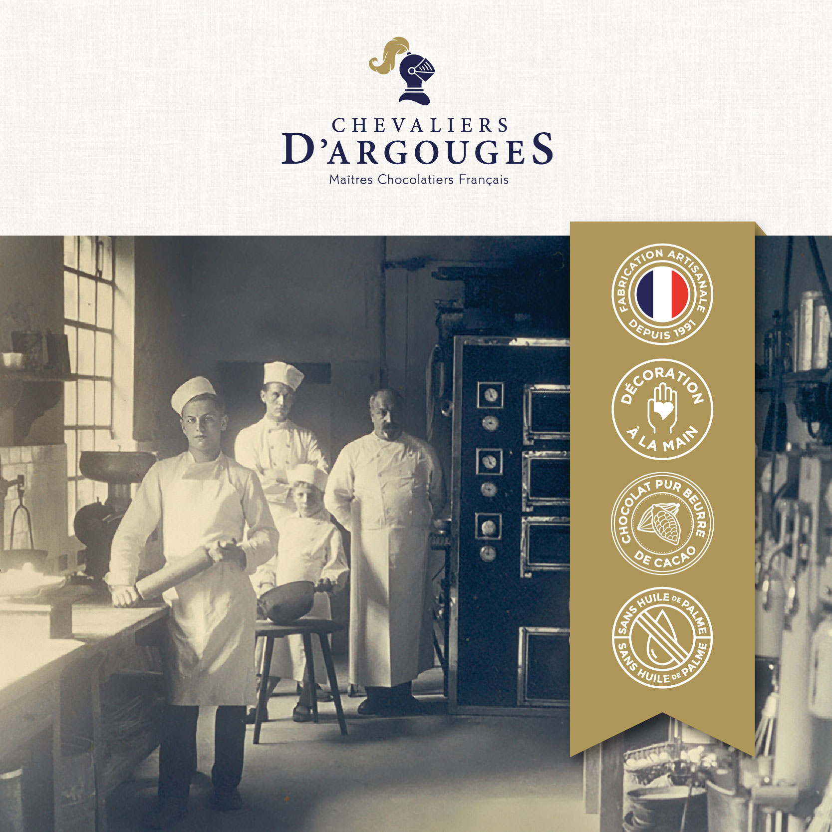 À la barre des Chevaliers d'Argouges, des maîtres chocolatiers passionnés qui font du savoir-faire artisanal un maître mot qui irrigue l'ensemble de l'entreprise. À chaque poste, une petite main experte vient façonner un chocolat d'exception, un geste précis qui perpétue une tradition.