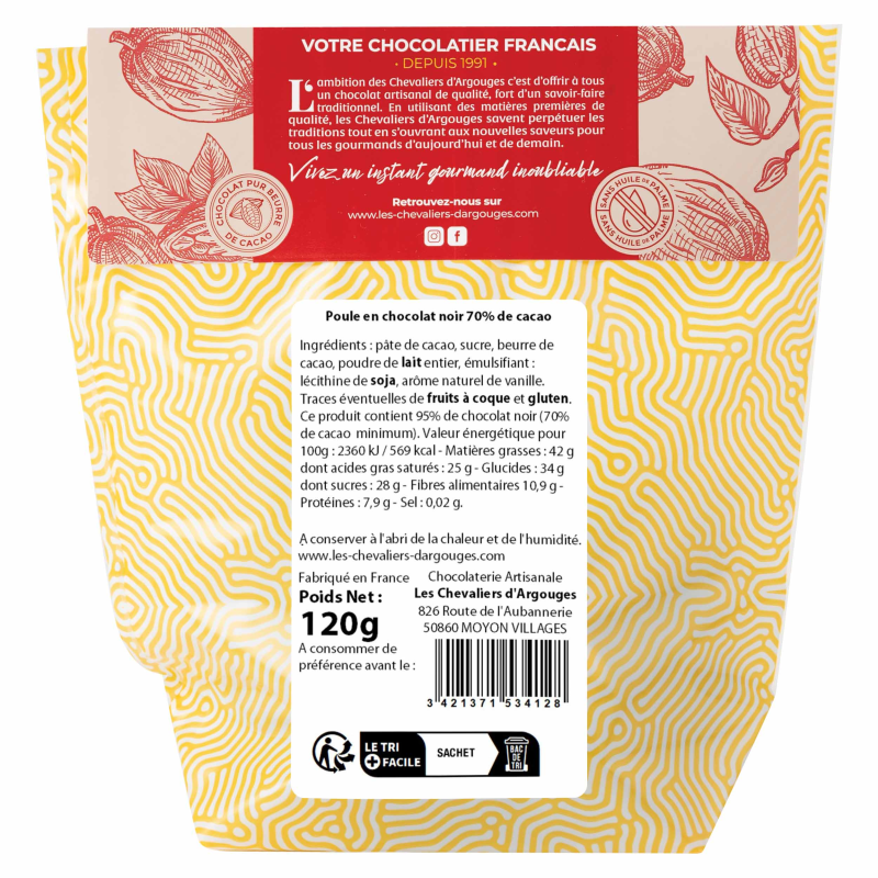 Poule au chocolat noir 70% de cacao, 115g